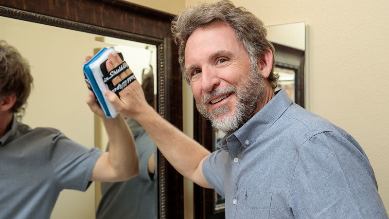 - Wipe glass and mirrors clean with moist microfiber sponge.