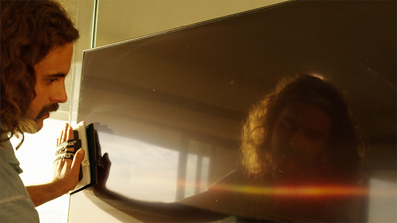 - Wipe glass with DRY inShield Wiper® microfiber sponge.